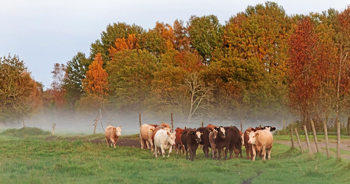 Kvigorna kliver fram på ängen, medan kvällssolens varma strålar lyser upp träden som börjar få fina höstfärger.